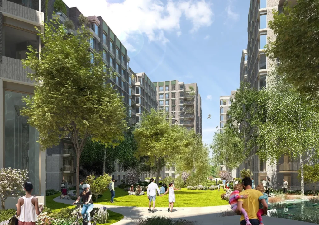 The height of the canal side buildings aligns with those proposed to the east of Plot 3, within Ballymore and Sainsbury’s live application, and masterplan for the site which was submitted in late 2023 It is acknowledged that the canalside building heights exceed planning policy; however, the distribution in height has been extensively studied to ensure the optimal balance of delivering high-quality homes, including affordable homes, open space, and harm to heritage assets.