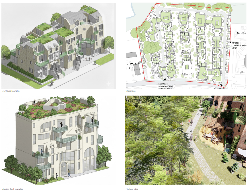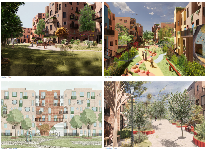 The proposed development seeks to create a gentle density scheme to maximise the potential of housing delivery on site through a design-led approach. Centred around six streets, four of which are entirely pedestrianised and heavily landscaped, the concept maximises the number of homes with front doors on streets.